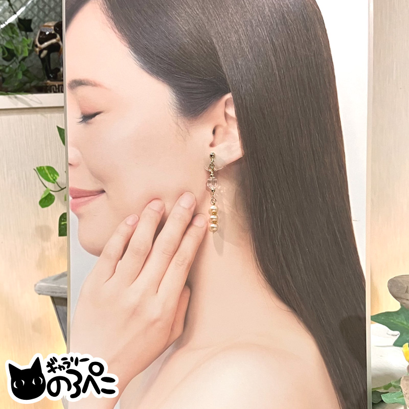 お顔周りを明るくしてくれるお色味で、パールを気軽にカジュアルに楽しめるイヤリングです。