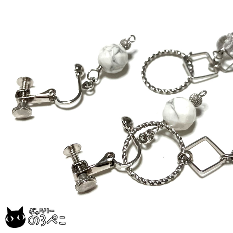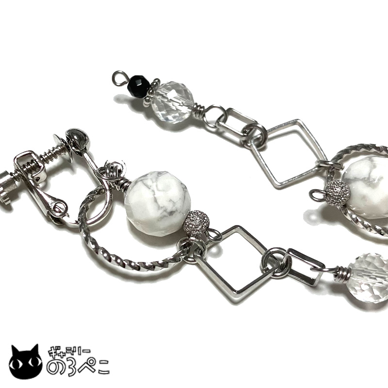 大理石みたいなハウライトの表情がシルバーカラーに映えて、シックで落ち着いた雰囲気です。