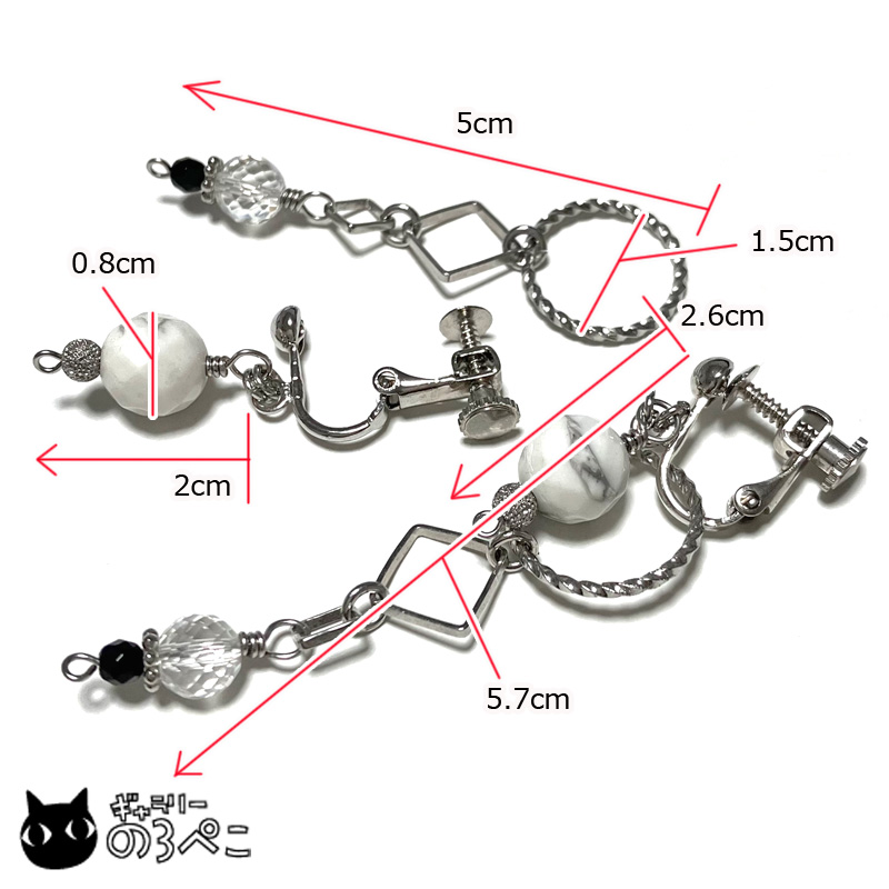 白地にグレーのスパイダー模様が入ったハウライトの1粒イヤリングはお仕事用にもカジュアルシーンにもおススメです。