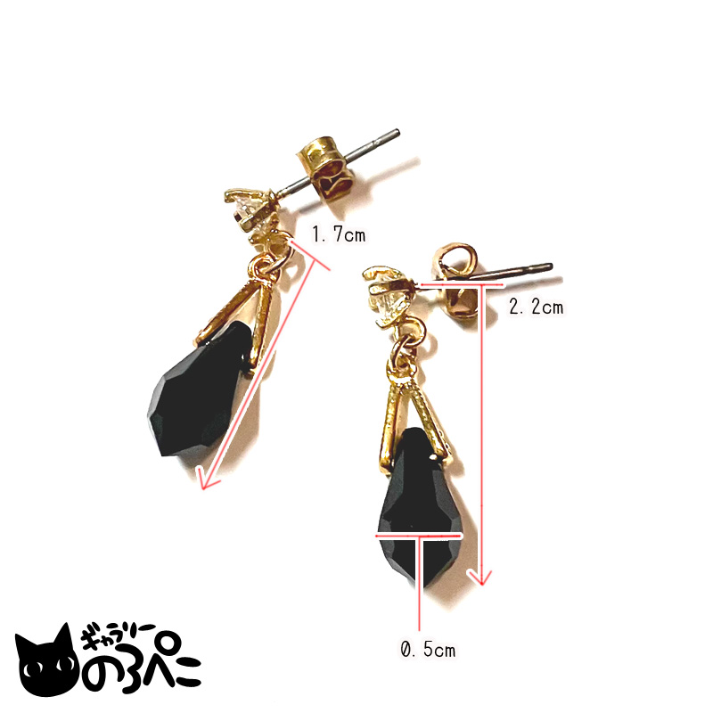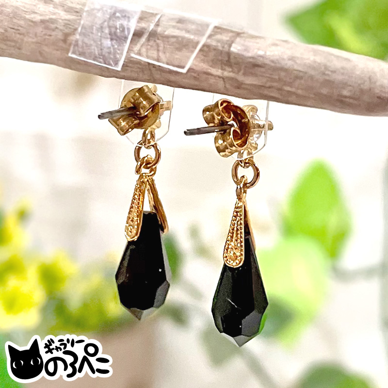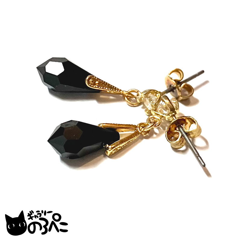 漆黒のスワロフスキーの雫のピアス(深い黒色のスワロフスキーのしずくのスタッドピアス)