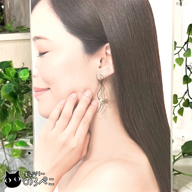 ウェーブは揺らめくように光がきらめき、ストレートバーはコットンパール近くに施されたねじりに細かなきらめきが。すっきりとしたデザインだけど、揺れるときらめきの変化が可愛らしい表情を見せてくれます。