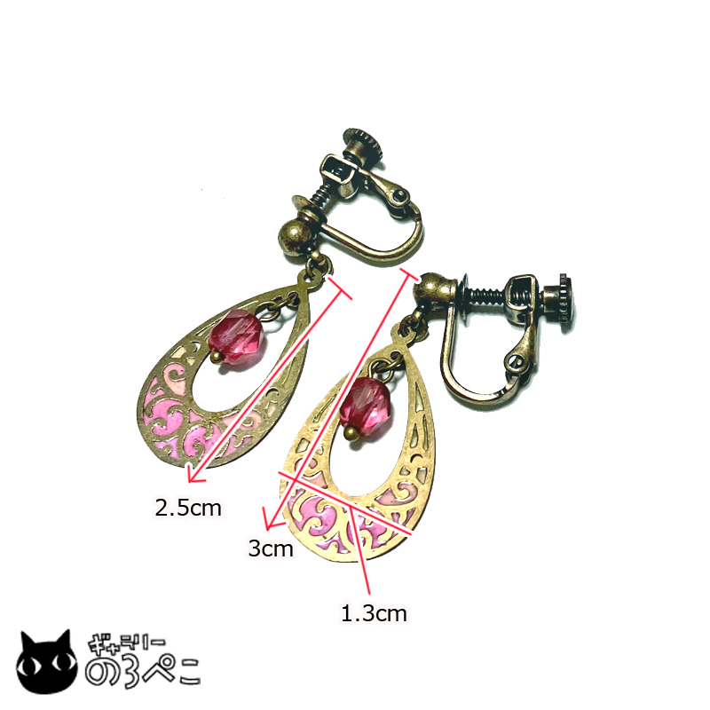 モチーフの下がり約2.5cm×幅約1.3cm / イヤリング全体の長さ約3cm / 金具はアンティークゴールドカラーです