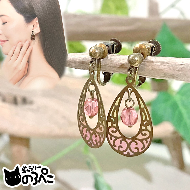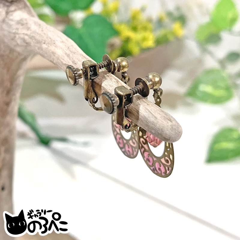 アンティーク調のデザインはシックで落ち着きある雰囲気。その中で、薄い透かしパーツがひらりと揺れる感じがさりげなく可愛らしいです。