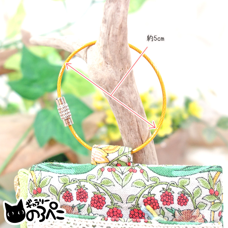 ワイヤーリングはネジ式でカンタンに着脱可能。リング内径が約5cmあるので、幅が広めなバッグ持ち手にもつけられます。ワイヤーがビニールコーティングされたタイプなので、バッグの持ち手にもやさしいです。