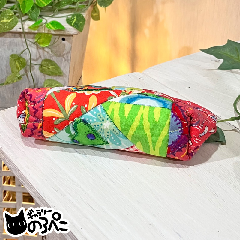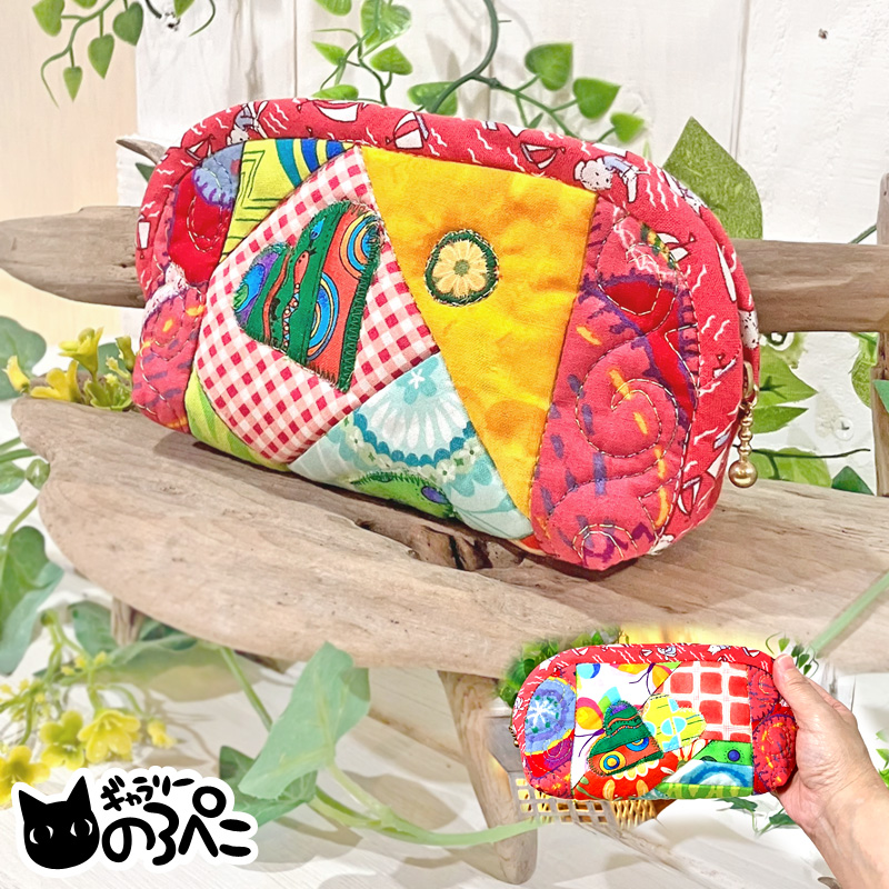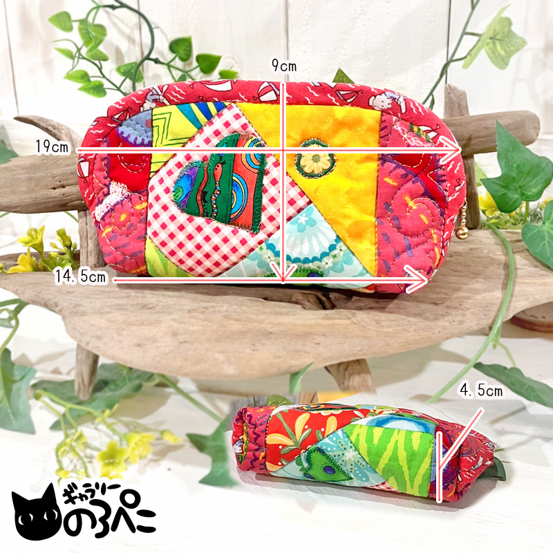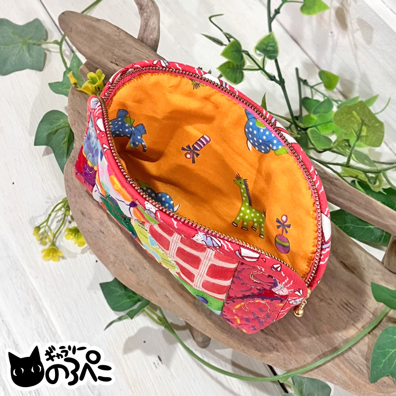 ポーチ全体がキルトなので、しっかりしていて型崩れせず、そして程よい厚みがあってふかっとしているので、中にあれこれ入れるにも安心感があります。