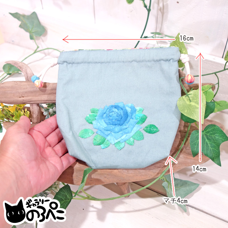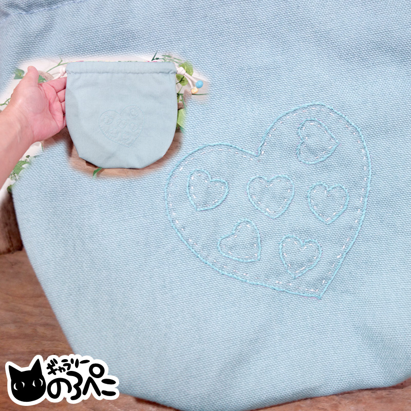 あるとなにかと役に立つサイズで、かわいい巾着をと考え、ひらめいた作品です。