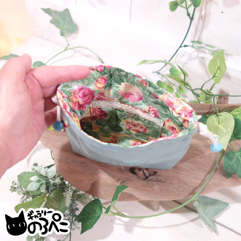 内側はバラの花柄のコットン生地。