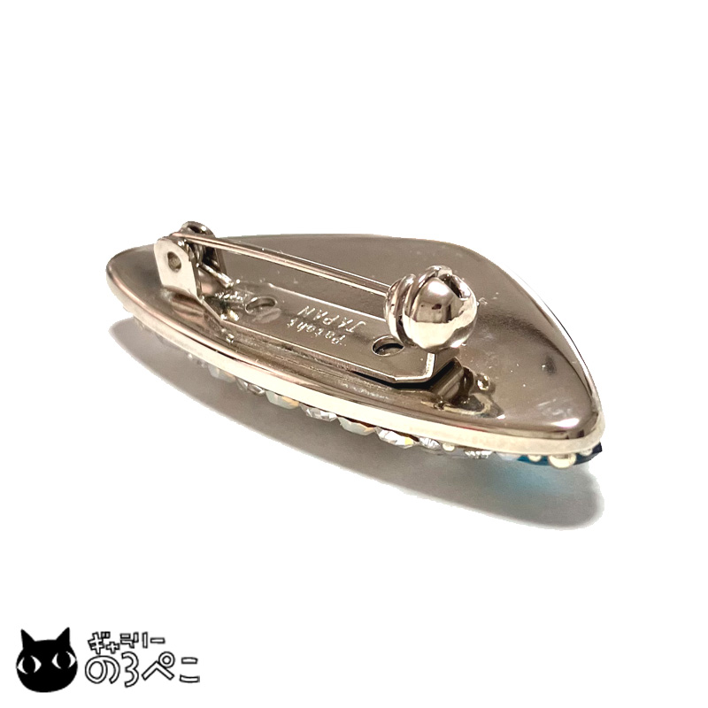 ブローチピンは、ピンを受ける部分にある小さなつまみをくるっと回すとピンをロックして外れにくくできる回転式ロックピンタイプです。