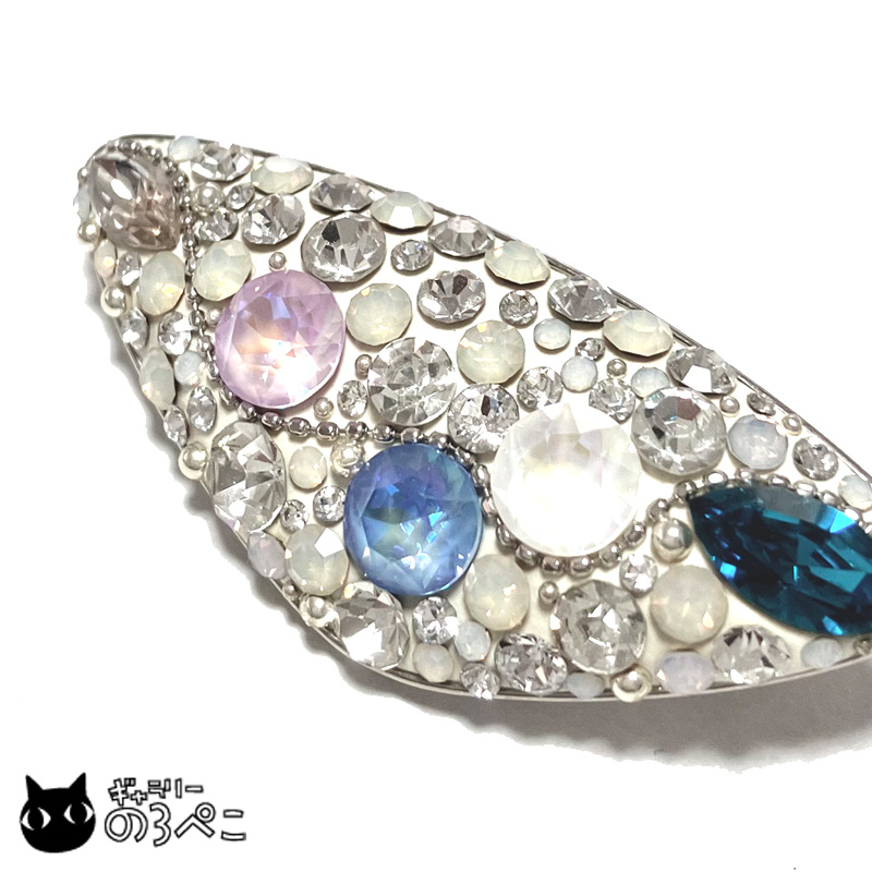 クリスタルガラスは、ラインストーンを貼っているのではなく、クリスタルクレイに奥行きのあるストーンを埋め込んでつくられているので、光をうけるとキラキラ豊かな光を放って輝いてとても綺麗です。