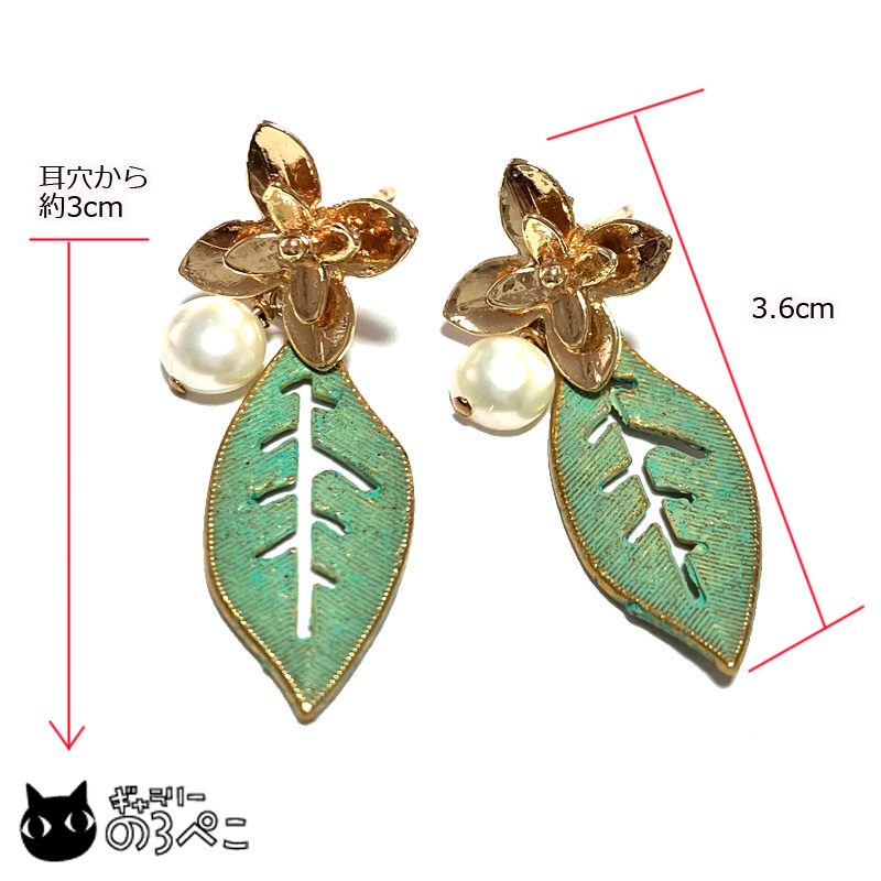 モチーフの下がり約3.6cm / リーフの幅約1cm / 金具はゴールドカラーです