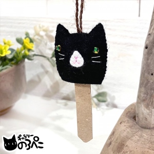 花猫ちゃんのバッグチャーム(手刺繍のお花を飾った黒猫ちゃんのフェルトマスコットバッグチャーム)