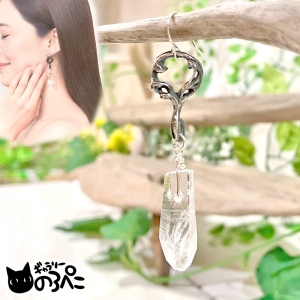 水分~板谷水晶と純銀の片耳ピアス(宮崎県西米良村産板谷水晶原石と水の流れの片耳用天然石ピアスB)