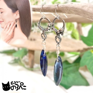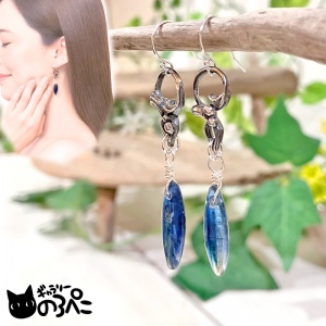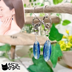 市杵~ネパール産カイヤナイトと純銀のピアス(神秘的な輝きのカイヤナイトと銀の波の天然石ピアス)