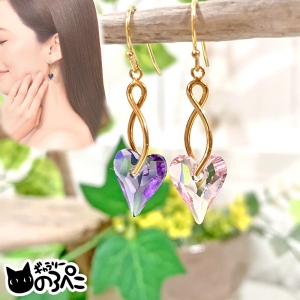 スワロフスキーワイルドハートのバイカラーアシンメトリーピアス(ピンク&パープルのスワロフスキーハートのピアス)